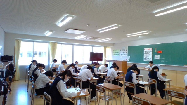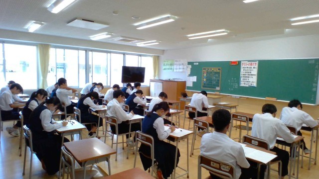 10月9日(木) 3年生「第3回実力テスト1日目」 公開日 2025/10/09 更新日 2025/10/09 3年生 第3回実力テスト1日目です。真剣に問題に向き合っています。(写真 上:1組、中:2組 下:3組)明日は残り2教科(理科、社会)を行います。