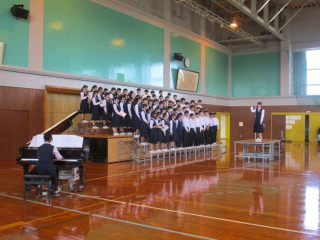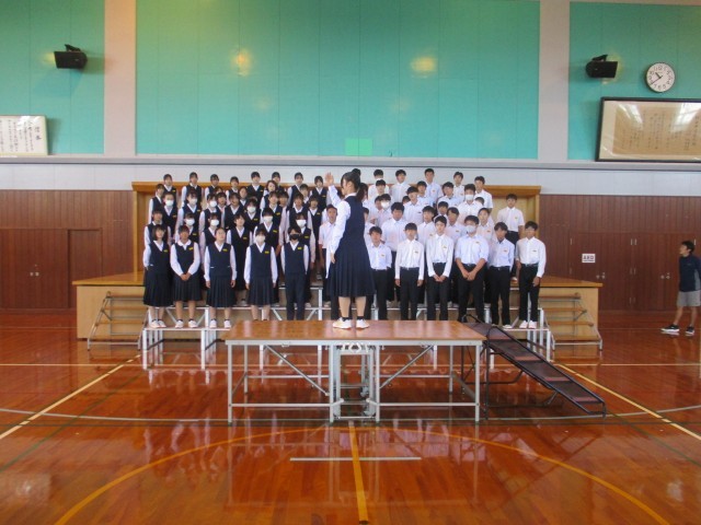 10月15日(水)合唱コンクールリハーサル 公開日 2025/10/15 更新日 2025/10/15 2年生 合唱コンクールが迫ってきました。今日は、1回目のリハーサルを行いました。ステージへの登壇の順番や立ち位置などを確認しました。学年合唱の隊形からクラス合唱の隊形移動もスムーズに行うことができました。時間の関係で学年合唱のみ行いましたが、練習の成果が出てきているようで本番当日が楽しみです。もうひと頑張りです。