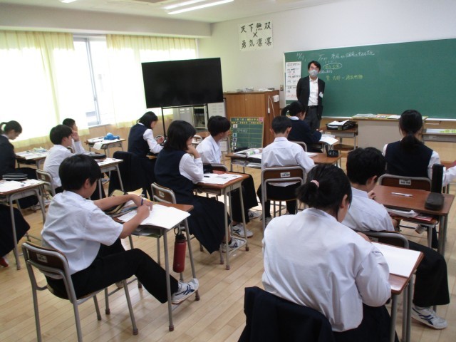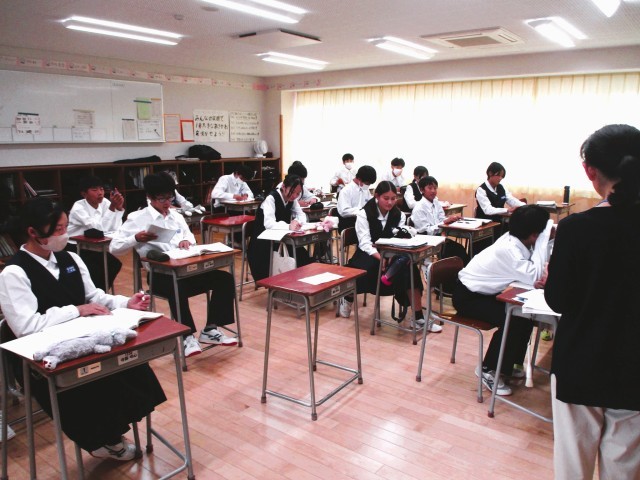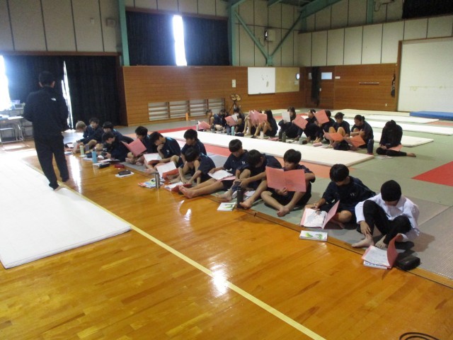 昔の歌人は本当に季節をよくとらえていたようで、上の歌は、定家が源氏物語の一節を踏まえて詠んだものだといわれています。生徒たちは、社会科で新古今和歌集を勉強していましたので、三夕の歌の一つを紹介しました。今とは異なる時間の使い方をしていた当時は、今以上に季節や風景を細やかに捉えていたのでしょう。何かとせわしない現代を生きる生徒たちにも、たまにはそんな時間を過ごしてほしいと願います。