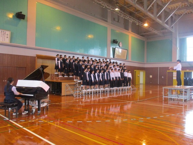 10月22日(水) 3年生「学年合唱練習」 公開日 2025/10/22 更新日 2025/10/22 3年生 3年生は学年合唱「手紙」の練習をしました。音楽科の先生のアドバイスを受け、練習を重ね、どんどん仕上がっています。10月25日(土)の合唱コンクール当日に向けて、クラス合唱も学年合唱も最終調整です。 +2