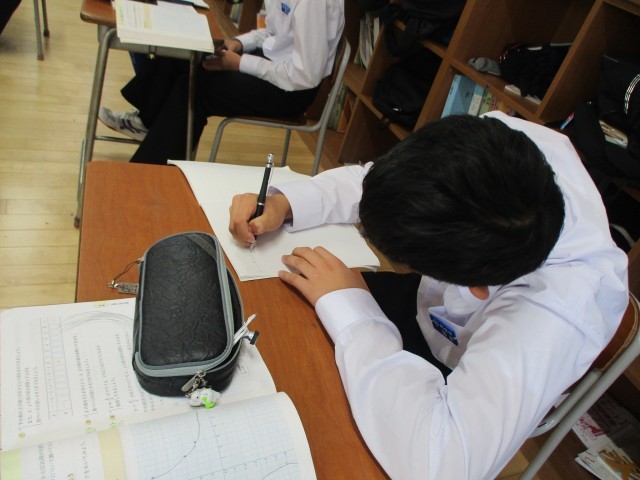 2枚目 1年3組 数学(自分の考えをノートに表現する生徒)