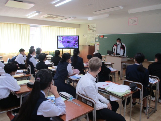 11月11日(火) 1学年 「授業の様子」 公開日 2025/11/11 更新日 2025/11/11 1年生 3限の授業の様子です。理科ではレンズを透過する光の進み方について動画を見て勉強していました。実験で整理した内容を動画で再確認して知識を定着させられるといいですね。板書もただ写すだけでなく、大事なこともメモしておきましょう。上 1年1組 理科中 1年2組 社会下 1年3組 英語