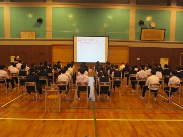 11月17日(月) 1学年 「産婦人科医の講話」 公開日 2025/11/18 更新日 2025/11/18 1年生 1学年は5限に産婦人科医の講話がありました。セクシュアリティやLGBTQについての内容では、LGBTQはAB型や左利きの人と同じくらいの割合であるという話を聞いて驚いている様子でした。多様性の時代に生きる生徒たちにとって学び多き時間になりました。