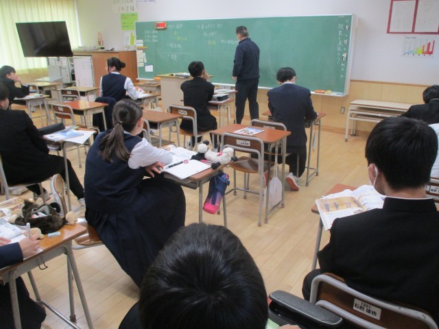 12月4日(木) 1学年 「授業の様子」 公開日 2025/12/04 更新日 2025/12/04 1年生 テストの返却が始まりました。解説をしっかり聞いて、なぜ間違えたのか。次にどうしたら得点できるのかを真剣に考えて、取り組みましょう。 和合にも初雪が訪れました。登校の際の、自転車の利用については天候をよく見て判断し、安全第一で登校してください。