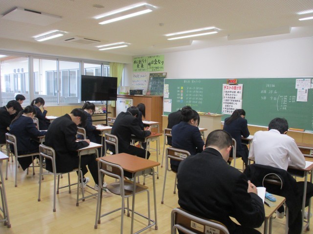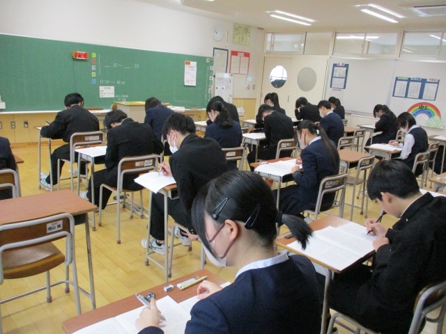 1月9日(金) 3年生「第5回実力テスト」 公開日 2026/01/12 更新日 2026/01/09 3年生 3年生は「第5回実力テスト」に臨んでいます。最後まで集中して問題に向き合っている様子からは、強い意気込みが感じられます。(写真 ①:1組、②:2組、③:3組、④:休み時間の様子) +1