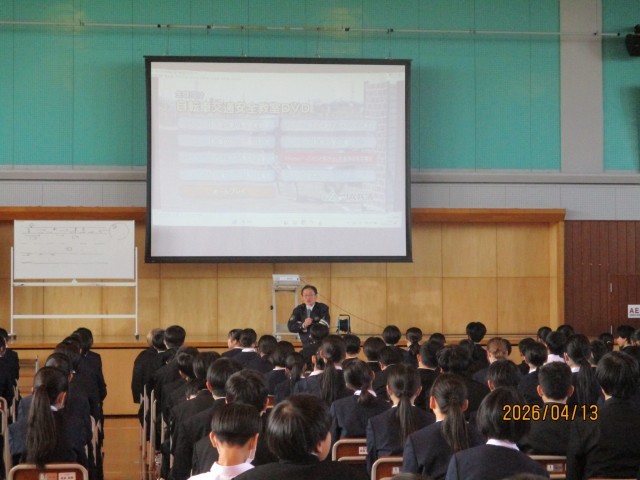 4月13日(月) 交通安全教室 公開日 2026/04/13 更新日 2026/04/13 学校生活 交通安全教室が行われました。自転車の乗る際の注意点や身近に潜む危険についてなど、様々なお話をしていただきました。今日の学びを生かして、日々の生活を過ごしていきましょう。