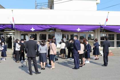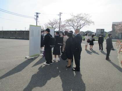 4月8日(木) 令和3年度入学式(1) 公開日 2021/04/08 更新日 2021/04/08 1年生 朗らかな陽光が照らす中で、令和3年度入学式が挙行されました。 自分のクラスが分かり、ドキドキしている姿が見られました。 中学校の学校生活がいよいよ始まります。