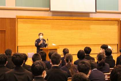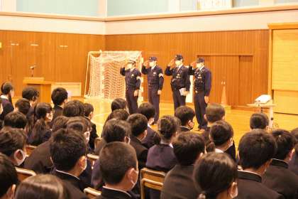 富山中央警察署交通課企画係の方から、自転車の正しい乗り方等の指導講話をいただきました。