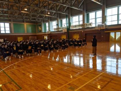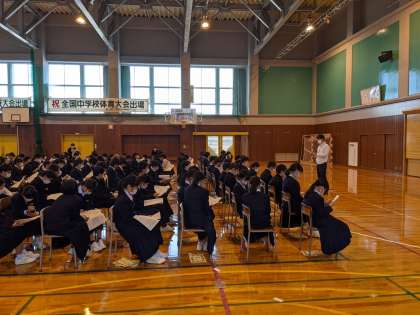 4月13日(火) 1年生 学年集会&学活 公開日 2021/04/13 更新日 2021/04/13 1年生 今日の5限目に、学年集会を行い、学習の仕方や生徒会組織、校則を守ることの大切さなどについての話をしました。 6限目は、その学年集会受けて、学級組織作りをしました。よりよい学年、学級になるように、みんなで協力をしながら様々な活動に取り組んでいきましょう。 1年生、今日もみんな元気です。