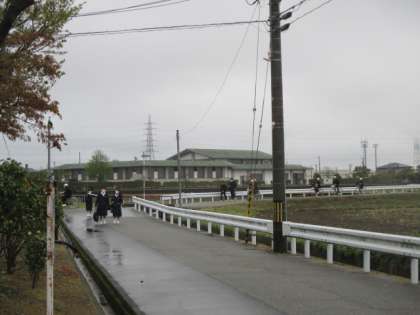 時折、小雨が降る肌寒い朝となりました。いつもより足早に生徒玄関に入ってきました。