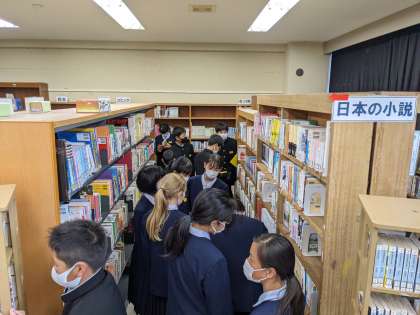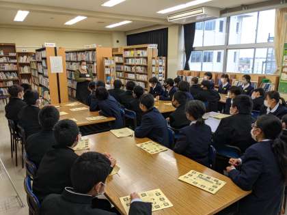 4月14日(水) 1年生 図書室オリエンテーリング 公開日 2021/04/14 更新日 2021/04/14 1年生 司書の先生から、5限に1組の生徒が、6限に2組の生徒が図書館の使い方についての説明を聴きました。その後、実際に本を借りてました。本との出会いが、心を豊かにします。 3組は、16日(金)に行います。