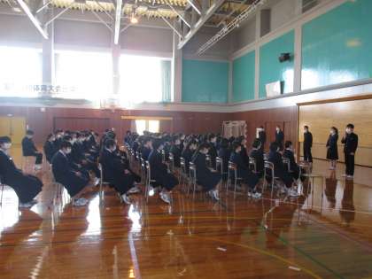4月21日(水)3学年の学年集会 公開日 2021/04/22 更新日 2021/04/22 3年生 学年集会を行いました。学級代表が学級目標を、学年代表が学年目標を発表しました。また、6月の運動会に向け、担当の先生から運動会に向けての話がありました。
