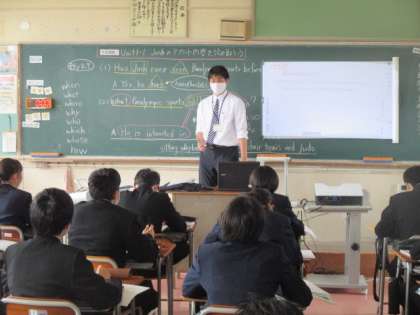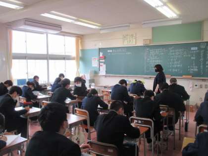 画像上:1組数学 乗法公式 画像中:2組英語 現在完了形 画像下:3組保健体育 シャトルラン