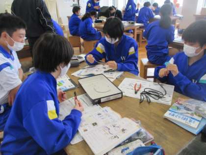 画像上:1組技術 電気機器の修理 画像中:2組体育 持久走 画像下:3組数学 式による説明