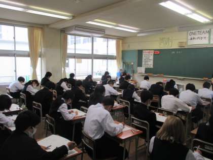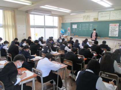 5月19日(水)1年授業の様子 公開日 2021/05/19 更新日 2021/05/19 学校生活 1年生にとって、初めての定期考査でした。英語のリスニングテストから始まり、5教科のテストが行われました。