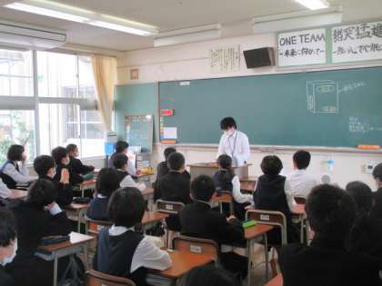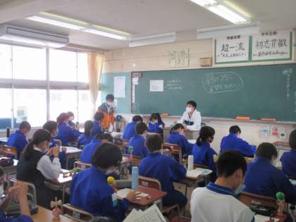 教育実習生の3人が、担当教室で健康観察、諸連絡をしていました。それぞれのやり方で、一生懸命連絡していました。