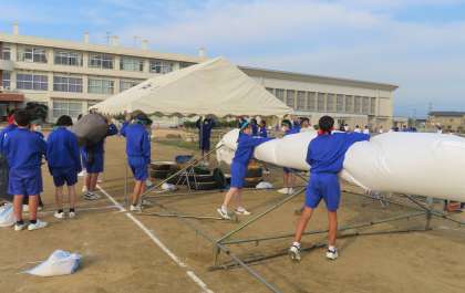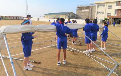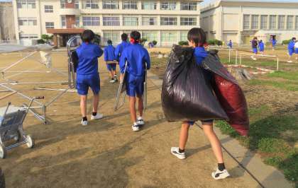 放課後の活動後の様子です。本部テントの片付けを各団の団リーダーが協力して行いました。団関係なく、みんなで協力できるってステキですね!!