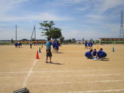 6月1日(火)1年 学年種目練習の様子 公開日 2021/06/01 更新日 2021/06/01 学校生活 1年生が学年種目「ボールリレー」の練習をしていました。グラウンドで全てを通した練習をしていなかったので、短時間で取り組んでいました。しかし、風があったこともありボールを思い通りに運ぶことができなかったようでした。風にも負けず、4人1組で力を合わせてリレーしてくださいね。