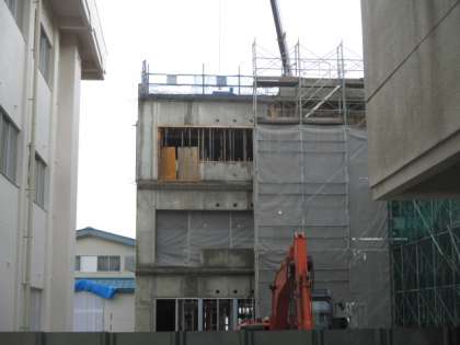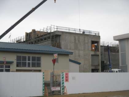 6月14日(月)校舎改築工事の様子 公開日 2021/06/14 更新日 2021/06/14 学校生活 改築工事現場の一部のシートと足場が取り外されました。新校舎のコンクリート壁が見え、形と高さが分かりました。まだ、6か月程先になりますが、完成が楽しみです。