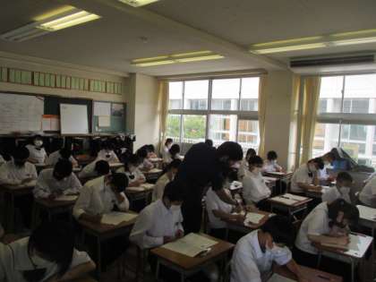 期末考査2日目。3限は保体でした。時間の後半に担当の先生が質問等確認に回っていました。明日の最終日は、英語、技・家、理科です