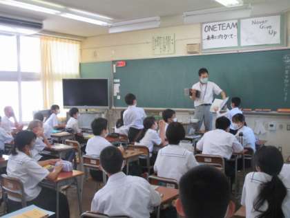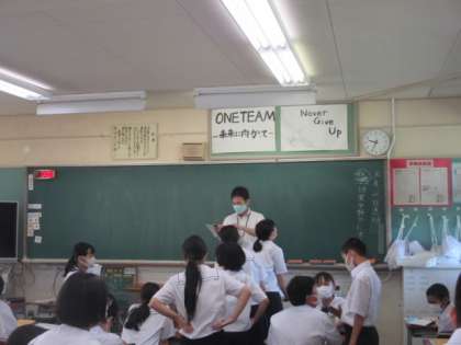 1年生の教室でも早速テストが返されていました。いろいろな表情をしながら受け取っていました。その後の解説を真剣に聞いていました。