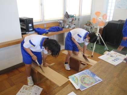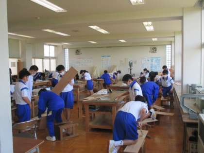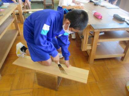 7月1日(木)1年授業の様子 2 公開日 2021/07/01 更新日 2021/07/01 学校生活 技術・家庭科 本立ての製作に取り組んでいました。撮った写真を見せると、自分の切り方や姿勢等を確認する生徒もいました。