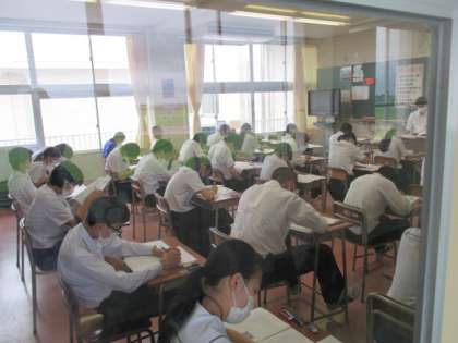 7月5日(月)3年授業の様子 公開日 2021/07/05 更新日 2021/07/05 学校生活 先週の期末考査に続き、3年生は実力テストがありました。登校時の強い雨で足元が濡れてしまった生徒がいましたが、始まると集中して問題を解いていました。