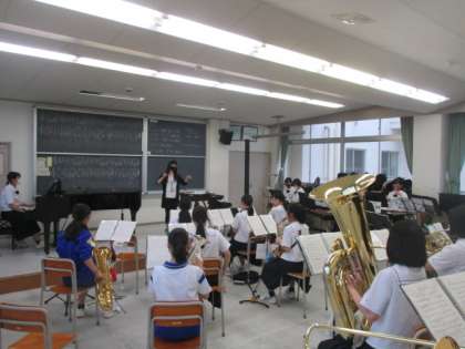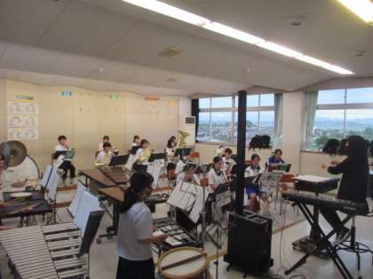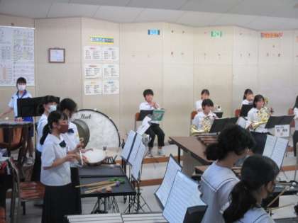 7月6日(火)部活動の様子 公開日 2021/07/06 更新日 2021/07/06 学校生活 雨が降り、校舎内で活動する部が多く熱気が漂っている中に、澄んだきれいな音色が聞こえてきました。時間が経つのを忘れ、吹奏楽部の演奏を聞かせてもらいました。 県吹奏楽コンクール、本校は17日(土)です。
