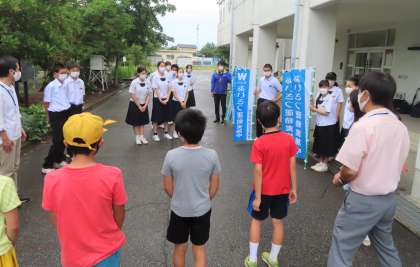 あいにくの天気でしたが、各小学校へ出向き、あいさつ運動を実施しました。懐かしい校舎や先生と共に挨拶を交わし、朝から爽やかな気持ちになりました!!