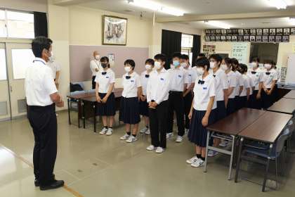 終学活後、会議室で行いました。選手の代表が、大会に向けての決意を力強く述べていました。今年は、富山県開催です。ベストの体調で臨めるよう調整してください。「がんばれ和合中!」