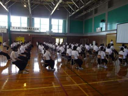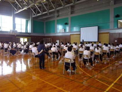 8月27日(金)3学年 学年集会 公開日 2021/08/27 更新日 2021/08/27 3年生 学年集会を行いました。夏休み明けの元気な顔が見られてよかったです。また、総合学習に向けての話がありました。