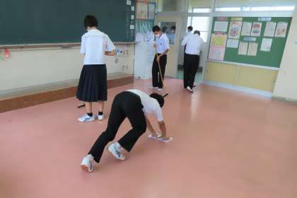 清掃時間の様子です。テキパキと掃除に取りかかり、協力してキレイにしています!!