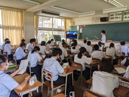 9月8日(水) 1学年 目標に向かって 公開日 2021/09/08 更新日 2021/09/08 1年生 今日の4限目は、YOASOBIの「群青」を聴き、大谷翔平選手が書いていたマンダラートを参考にしながら、自分の目標を立て、何ができるかを考えました。
