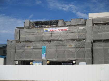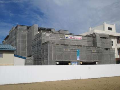 9月に入り、教室棟の改築工事も残り3か月となりました。今日は太陽の光をいっぱい浴びていました。12月の完成に向け、工事が進んでいます。