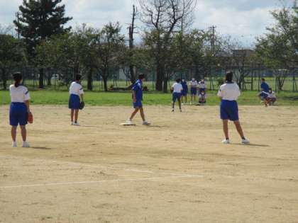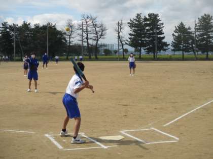 広いグラウンドで2面を使い、ソフトボールを力強く打っていました。