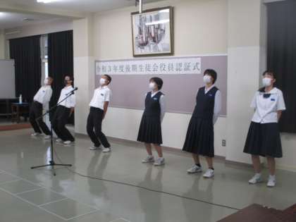 後期生徒会役員認証式・引継ぎ式を行いました。式は会議室で行い、各教室で視聴する方法で行いました。