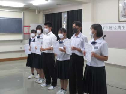 9月22日(水)後期生徒会役員認証式・引継ぎ式 1