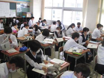 ホームスティ出発前の会話をイメージしながら会話を行っていました。担当の先生の体験談 出発ロビーでの失敗談は、なかなかおもしろかったのですが、生徒は同じ失敗はしたくないと真剣な表情で聞いていました。