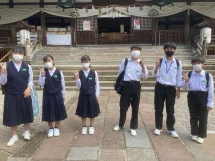午後も生き生きと活動しています。(上から2組尾山神社、1組尾山神社、2組旧高田家跡での集合写真です。)