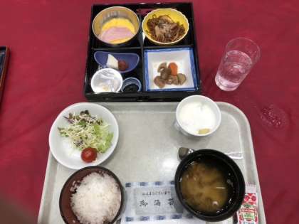 朝食です。落ち着いた雰囲気で、大変静か。でも食欲はバッチリ。