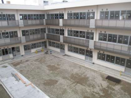 合唱練習の様子を見て回っている途中、新しい校舎の中庭を見ることができました。来年はこの中庭で合唱の練習したり、交流したりするのでしょうね。楽しみですね。