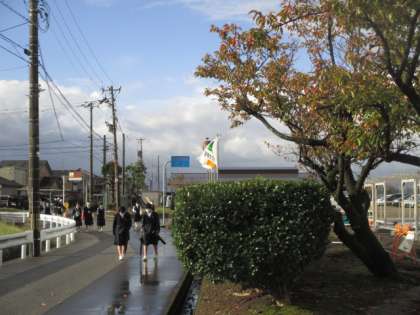 10月20日(水)登校時の様子 公開日 2021/10/20 更新日 2021/10/20 学校生活 日が差したり、急に雨が降ったりしていました。学校の北西側に真っ黒な雲が広がっていました。急に強い雨が降るかもしれませんね。生徒の服装もすっかり冬服が多くなりました。