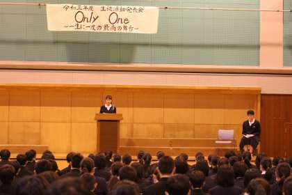 合唱コンクールの後、「社会を明るくする運動」の意見発表を3年の2名が行いました。