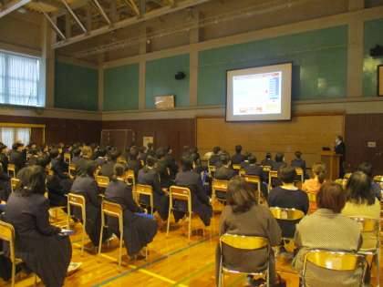 10月27日(水) 第1回進路等説明会 公開日 2021/10/27 更新日 2021/10/27 学校生活 3年生と保護者を対象とした第1回進路等説明会が行われました。6つの高校の説明を真剣に聞き、自らの進路について考える良い時間となりました。