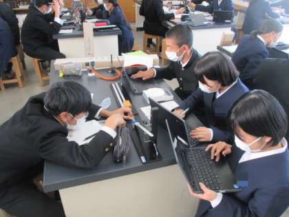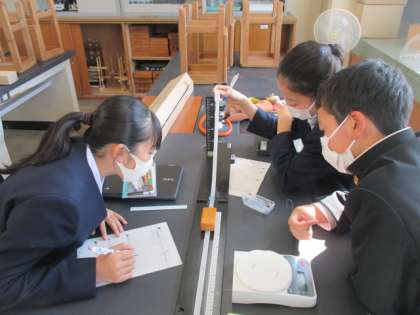 10月28日(木)3年 授業の様子3 公開日 2021/10/28 更新日 2021/10/28 学校生活 3組:理科 仕事と力学的エネルギー グループで協力しながら真剣に実験を行い、データを打ち込んでいました。