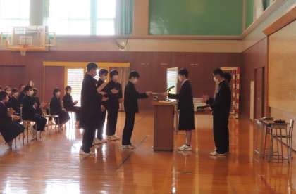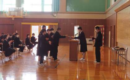 11月1日(月)3年 学年集会 公開日 2021/11/01 更新日 2021/11/01 3年生 学年集会の最初に「修学旅行フォトコンテスト」の表彰式を行いました。「風景部門」「人物部門」の2部門で、優秀賞、努力賞の表彰をしました!!