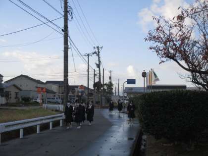 登校時間帯の始めは曇っていましたが、後半は日も差し始め暖かくなってきました。