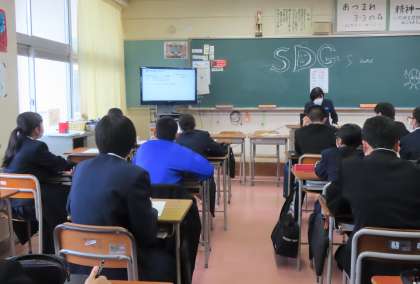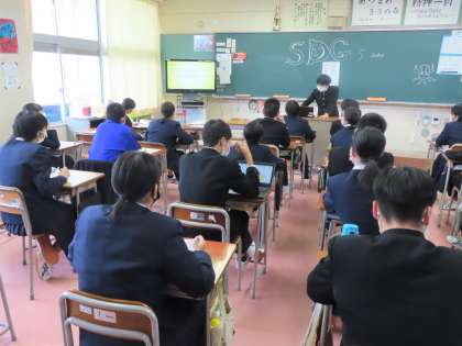 総合の時間、SDGsクラス発表会を行いました。各自がテーマをもって調べ、これからどんなことが実践できるかをそれぞれが提案しました。