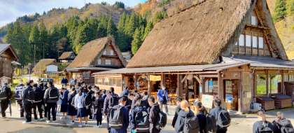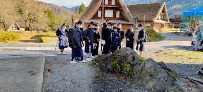 足元に気をつけながら、建物や景色を楽しんできました。次は和紙すき体験をします。