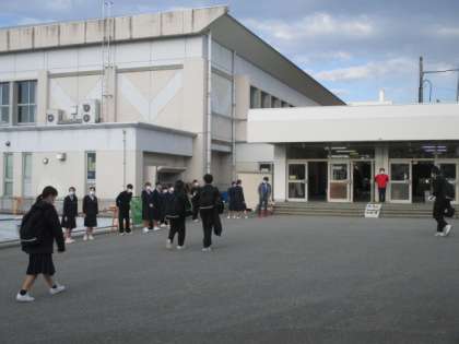 11月15日(月)登校時の様子 公開日 2021/11/15 更新日 2021/11/15 学校生活 今日から、生徒会執行部の企画による「あいさつ運動」が行われます。各学年各クラスの生活班合同で行います。気持ちのよいあいさつをさらに広げましょう。